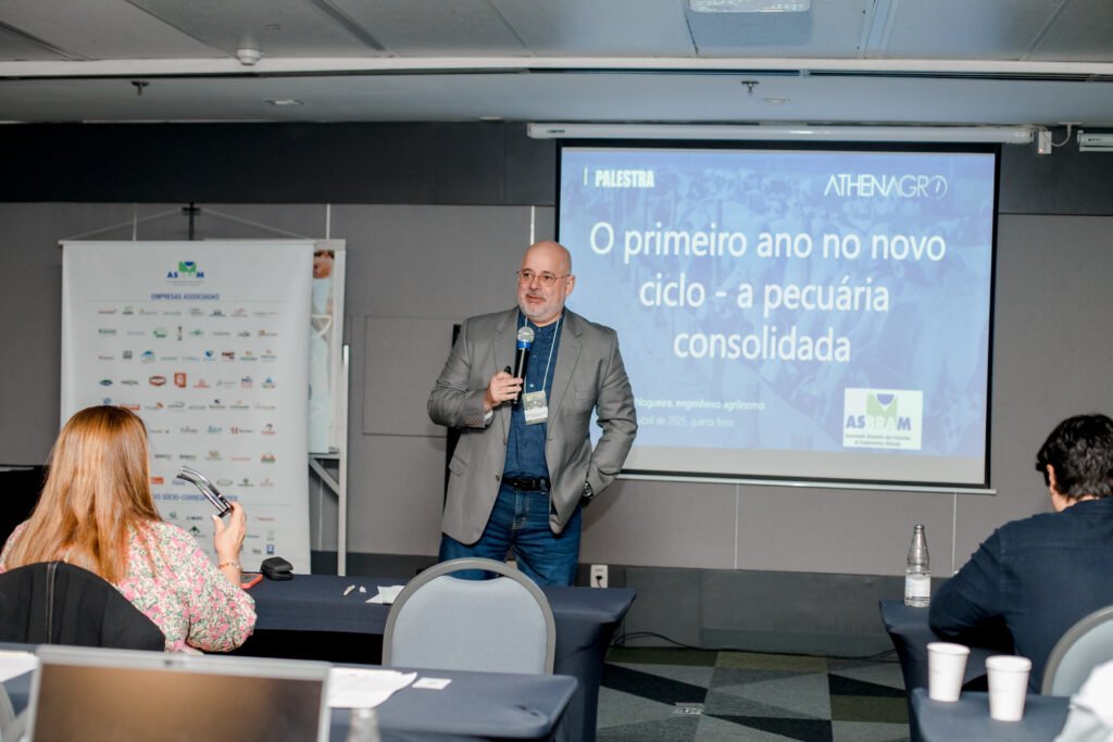 Outro ponto salientado durante a reunião foi que os investimentos nas fazendas brasileiras vão dobrar e a área que mais pode contribuir é a Nutrição. “Produzimos em 100 milhões de hectares e temos 60 milhões ociosos. E temos muito para avançar em qualidade de pastagem. Mas sou otimista. Sempre acreditei que, em alta tecnologia, a Pecuária ganha da Agricultura”, decretou Maurício Palma Nogueira. A opinião vem embalada pelos ótimos números da comercialização de suplementos minerais em 2025. No primeiro trimestre, foram comercializadas 535,7 mil toneladas, um avanço de 4,75% sobre o mesmo período do ano passado. Elevação de 4,7% na pecuária de corte e de 3,5% na pecuária de leite. “Só em março, o crescimento alcançou 6% sobre o mesmo mês do ano passado. O panorama pecuário é favorável. Foram 39,3 milhões de cabeças abatidas em 2024 e mais de 10 milhões de toneladas produzidas. A oferta segue boa e a demanda aquecida, no mercado interno e externo. Isso tudo ajuda o pecuarista a investir em tecnologia. Porém, é necessário atenção ao cenário brasileiro e internacional. Não está fácil fazer prognósticos, o tabuleiro está bastante embaralhado. O mundo vai crescer menos, a guerra fiscal causa turbulência e o Brasil tem problemas próprios e graves, como o déficit fiscal. Mesmo assim, é muito razoável ler um panorama positivo para a nossa carne bovina. A confiança da população mundial caiu bastante, mas é certo que, em qualquer panorama, o ‘universo agro’ vai sofrer menos”, apontou o professor de Economia da Fundação Getúlio Vargas (FGV), pesquisador da GVAgro e coordenador do Painel de Comercialização da Asbram, Felippe Cauê Serigati.